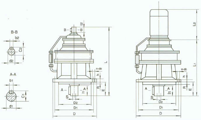 BL擺線針輪減速機(jī)為法蘭式、雙軸型、立式安裝;
